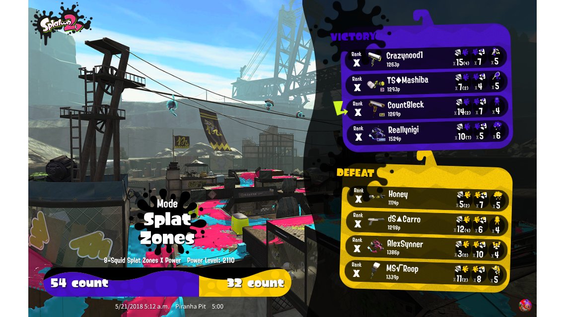 | Mode | Splat Zones - Ranked Battle | |||||||||||||||||||||||||||||||