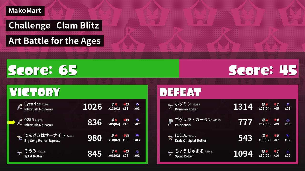 Results of ゼロニゴゴ's Battle