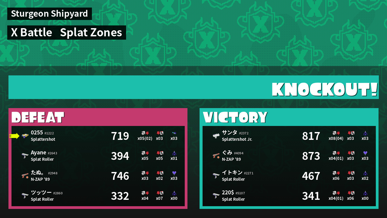 | Medals | #1 Overall Splatter #1 Splat Zone Guard #1 Super Jump Spot | ||