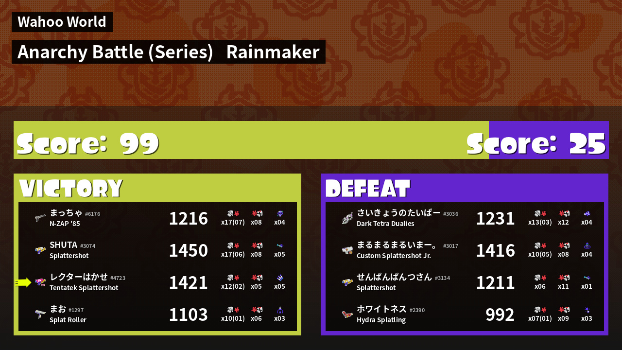| Mode | Rainmaker - Anarchy Battle (Series) | ||