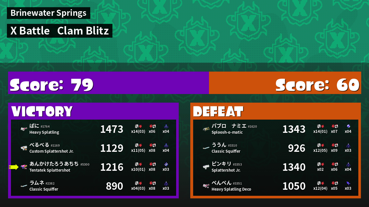 | Medals | #1 Super Jump Spot #1 Clam Stopper #1 Ink Consumer | ||