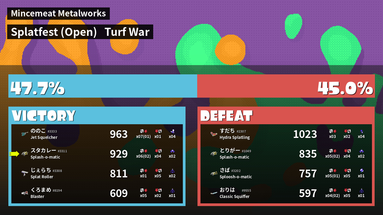 | Medals | #1 Popular Target #1 Enemy-Base Inker #1 Splat Assister | ||