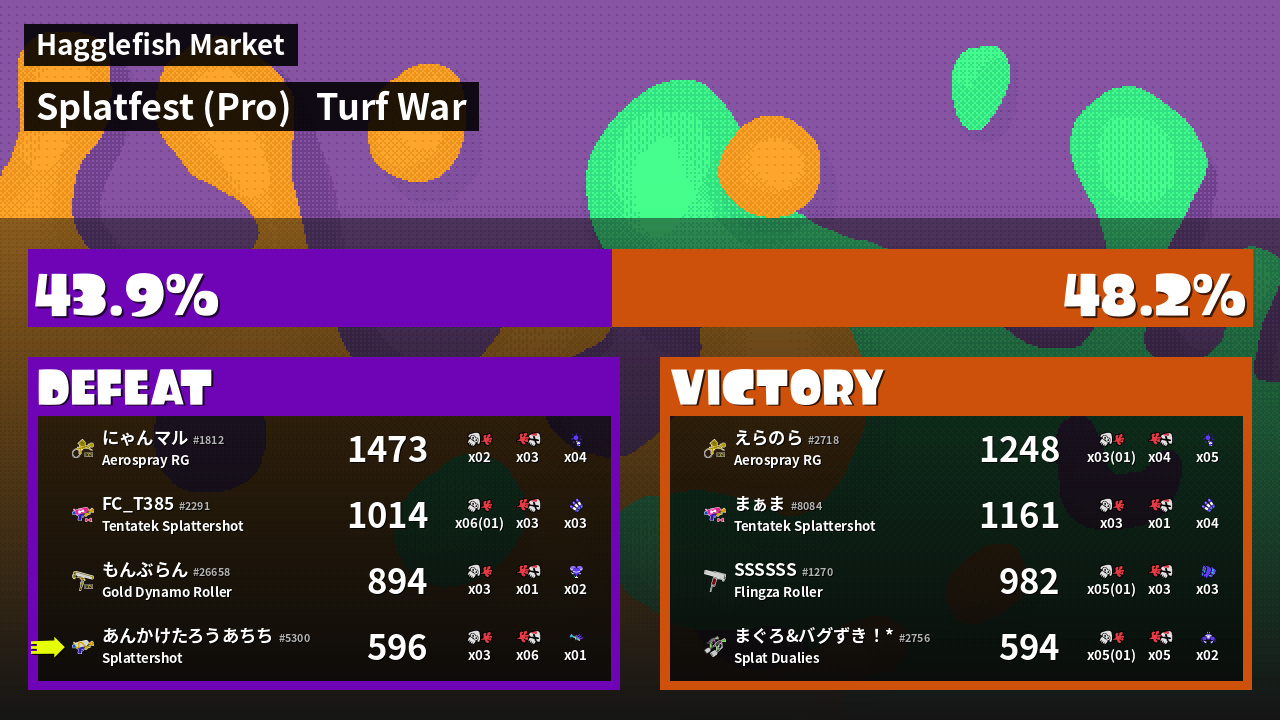 | Mode | Turf War - Splatfest (Pro) | ||
