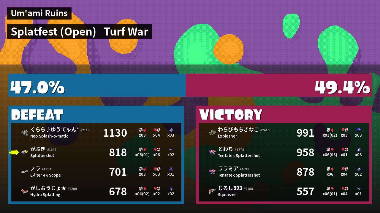| Mode | Turf War - Splatfest (Open) | ||
