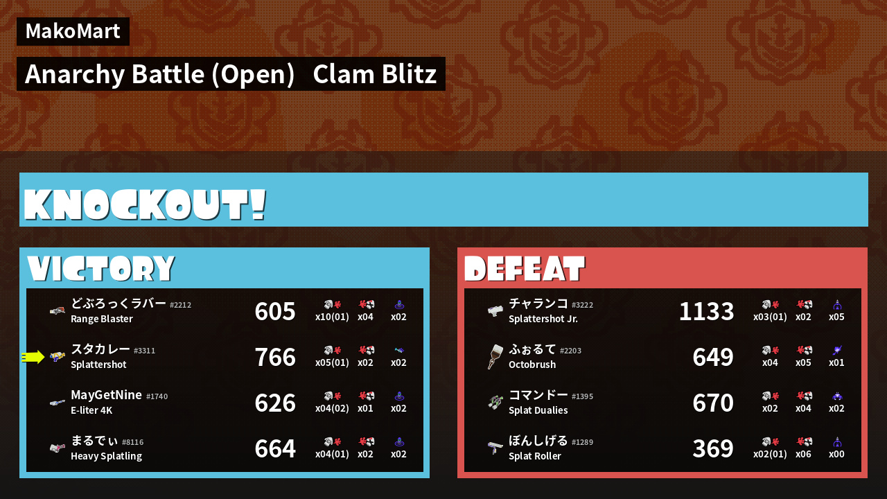 | Mode | Clam Blitz - Anarchy Battle (Open) | ||