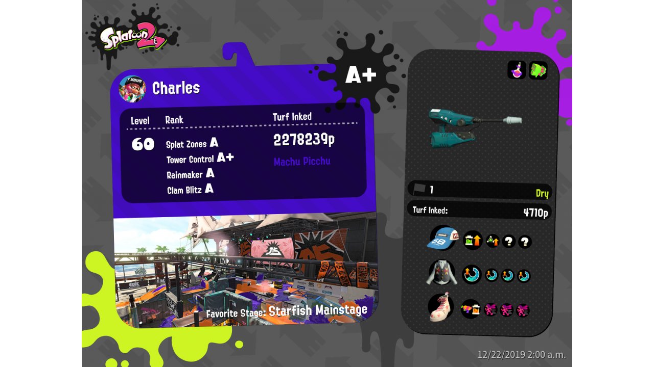 | Mode | Splat Zones - League Battle (Twin) | ||||||||||||||||||||||||||||||||||