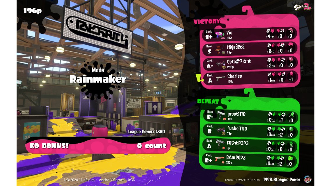 | Mode | Rainmaker - League Battle (Twin) | ||||||||||||||||||||||||||||||||||