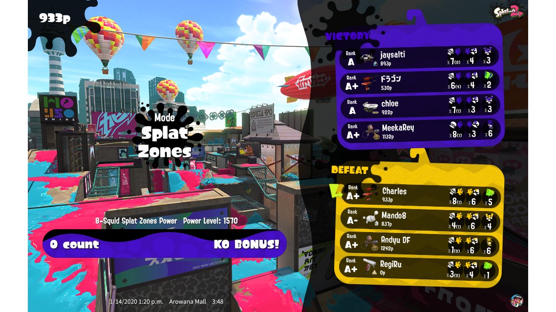 | Mode | Splat Zones - Ranked Battle | ||||||||||||||||||||||||||||||||||