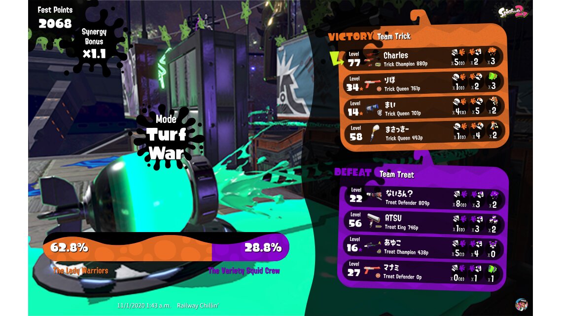 | Mode | Turf War - Splatfest (Normal) | |||||||||||||||||||||||||||||||||||||||||||