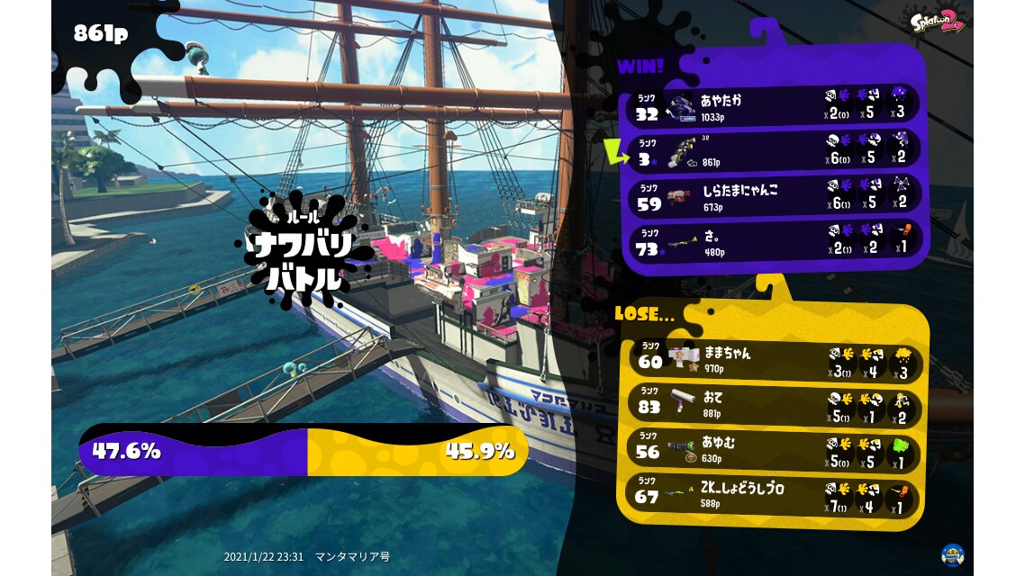 | Mode | Turf War - Regular Battle | |||||||||||||||||||||||||||||||