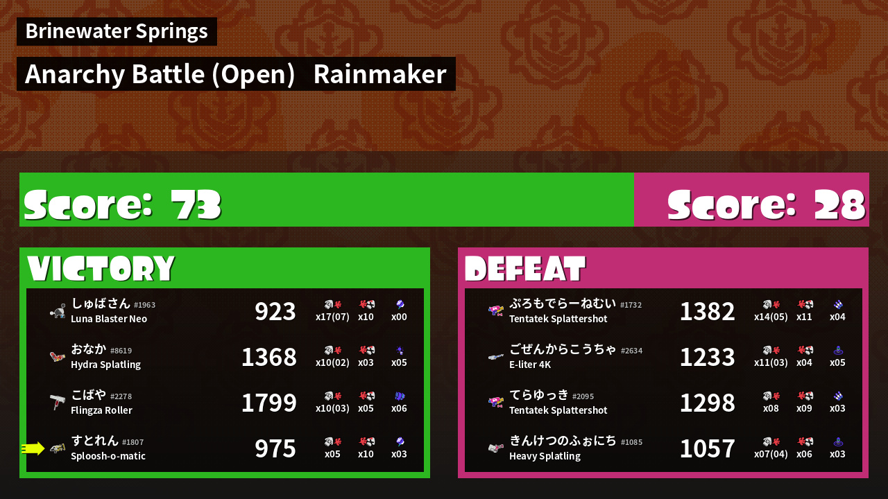| Medals |   #1 Score Booster  #1 Damage Taker  #1 Ink Consumer | ||