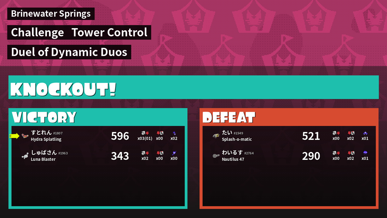 | Medals | #1 Overall Splatter #1 Score Booster Record-Score Setter | ||