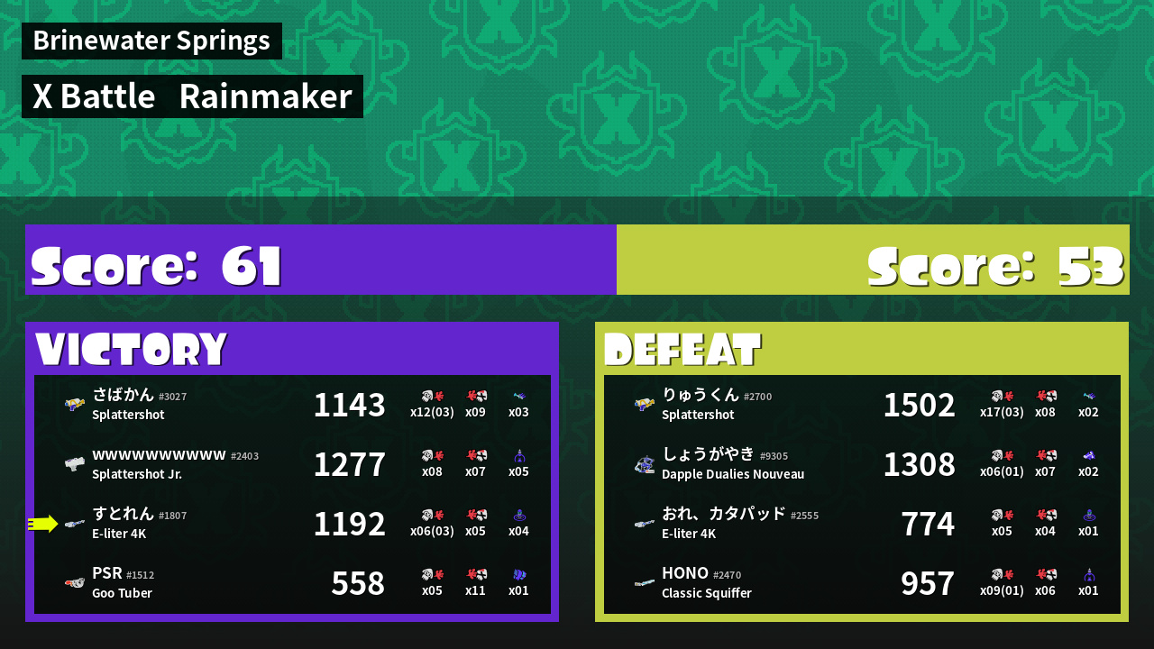 | Medals | #1 Splat Assister #1 Checkpoint Breaker #1 Rainmaker Carrier | ||