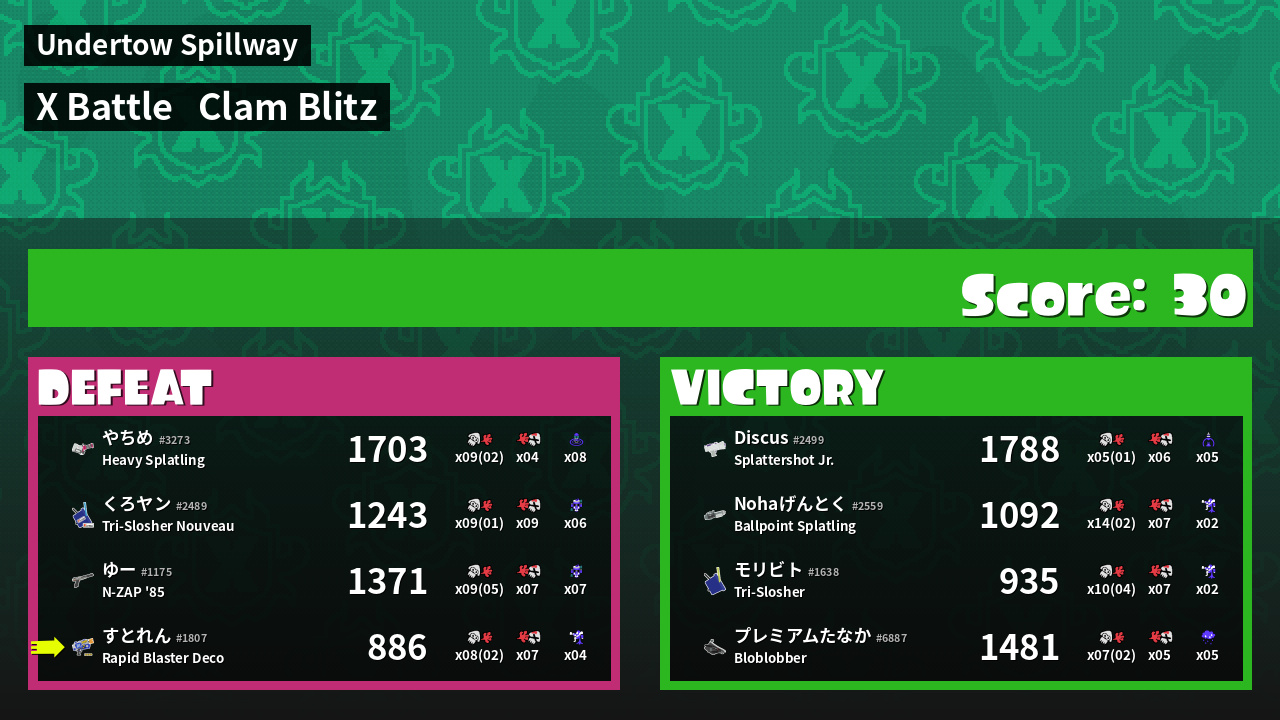 | Mode | Clam Blitz - X Battle | ||