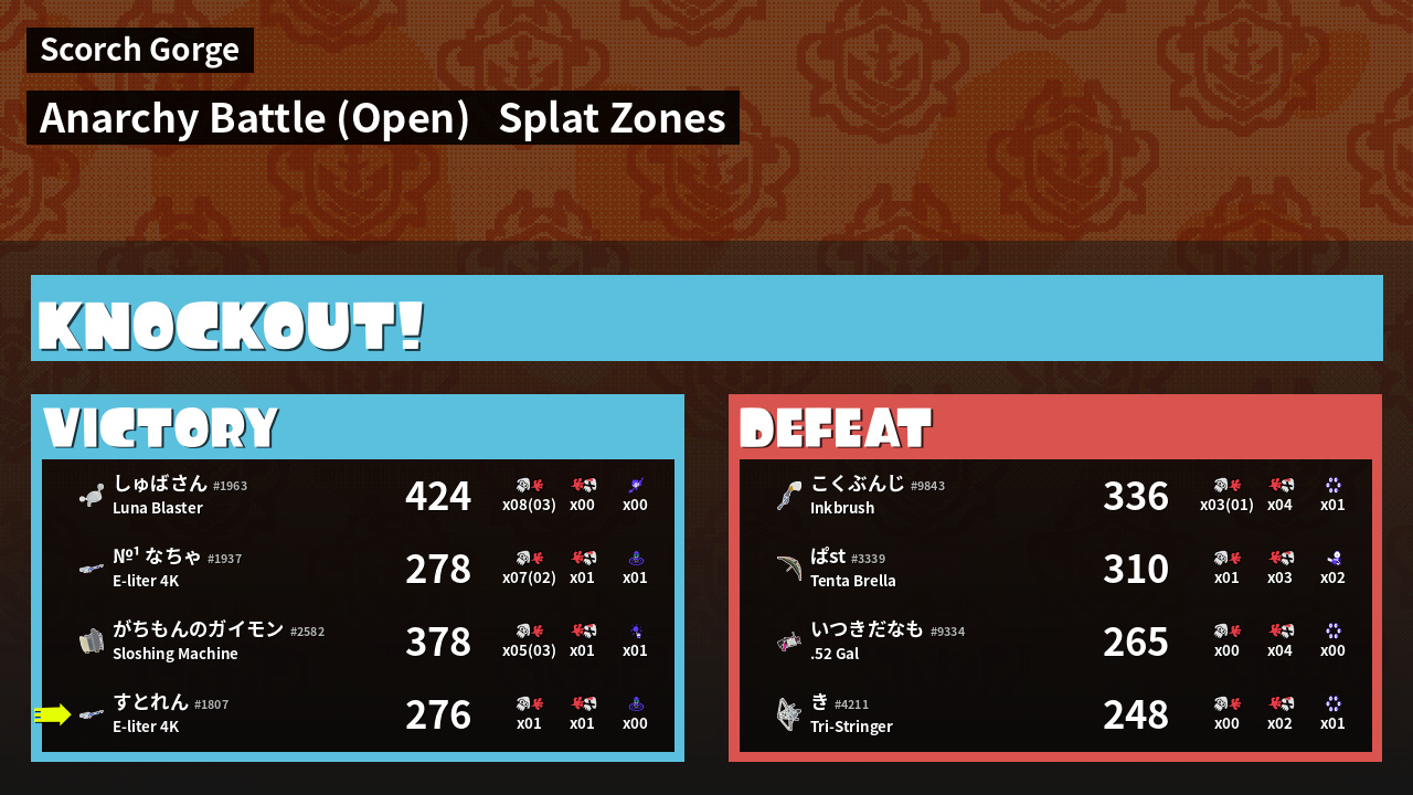 | Mode | Splat Zones - Anarchy Battle (Open) | ||
