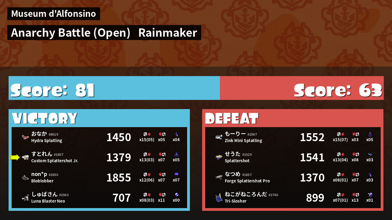 | Mode | Rainmaker - Anarchy Battle (Open) | ||