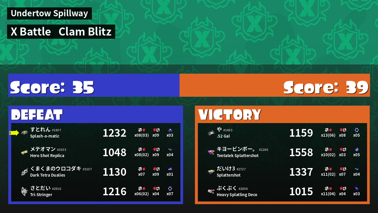 | Mode | Clam Blitz - X Battle | ||