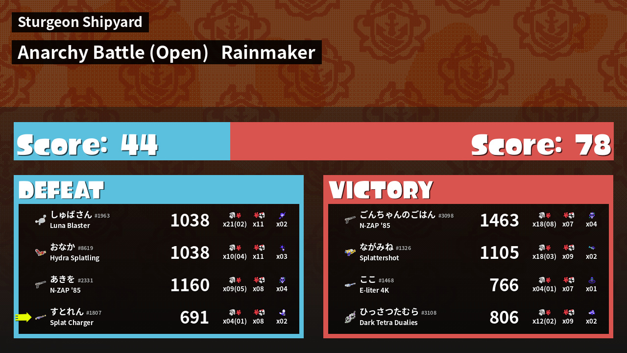 | Mode | Rainmaker - Anarchy Battle (Open) | ||