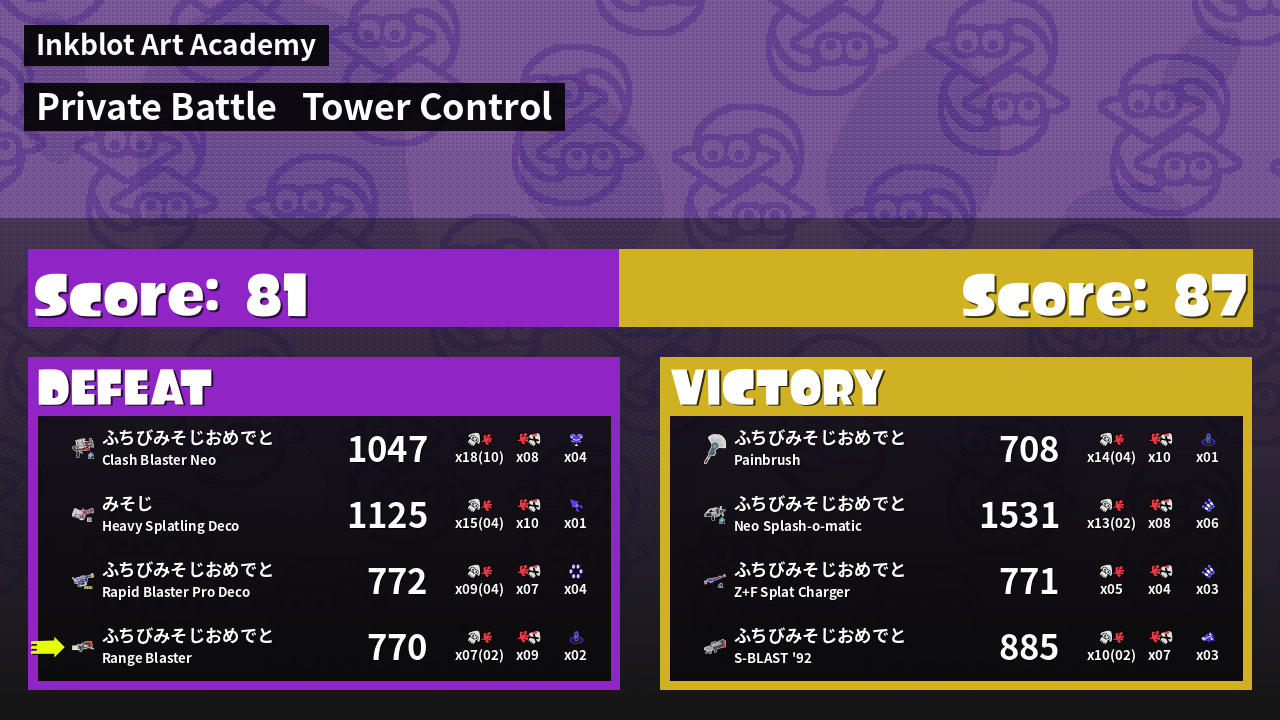 | Weapon | Range Blaster ( Suction Bomb / Wave Breaker) | ||