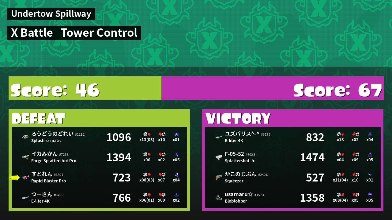 | Medals | Record-Score Setter #1 Splat Assister #1 Ink Vac User | ||