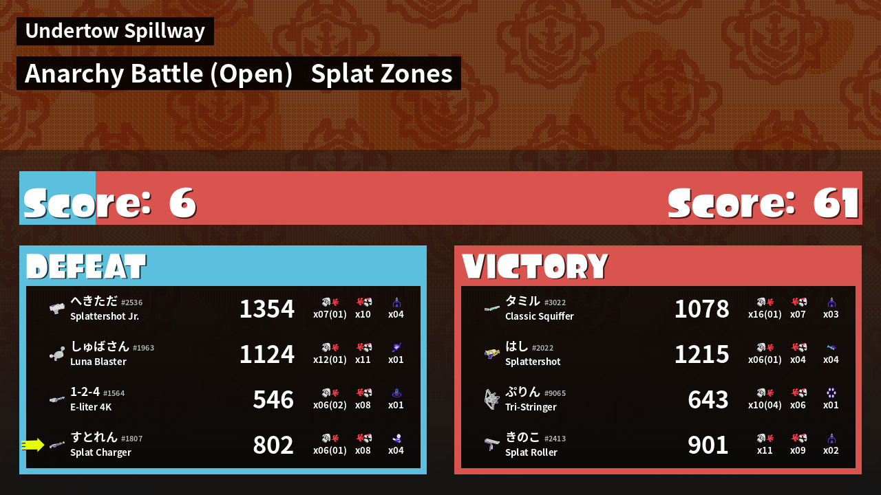 | Mode | Splat Zones - Anarchy Battle (Open) | ||