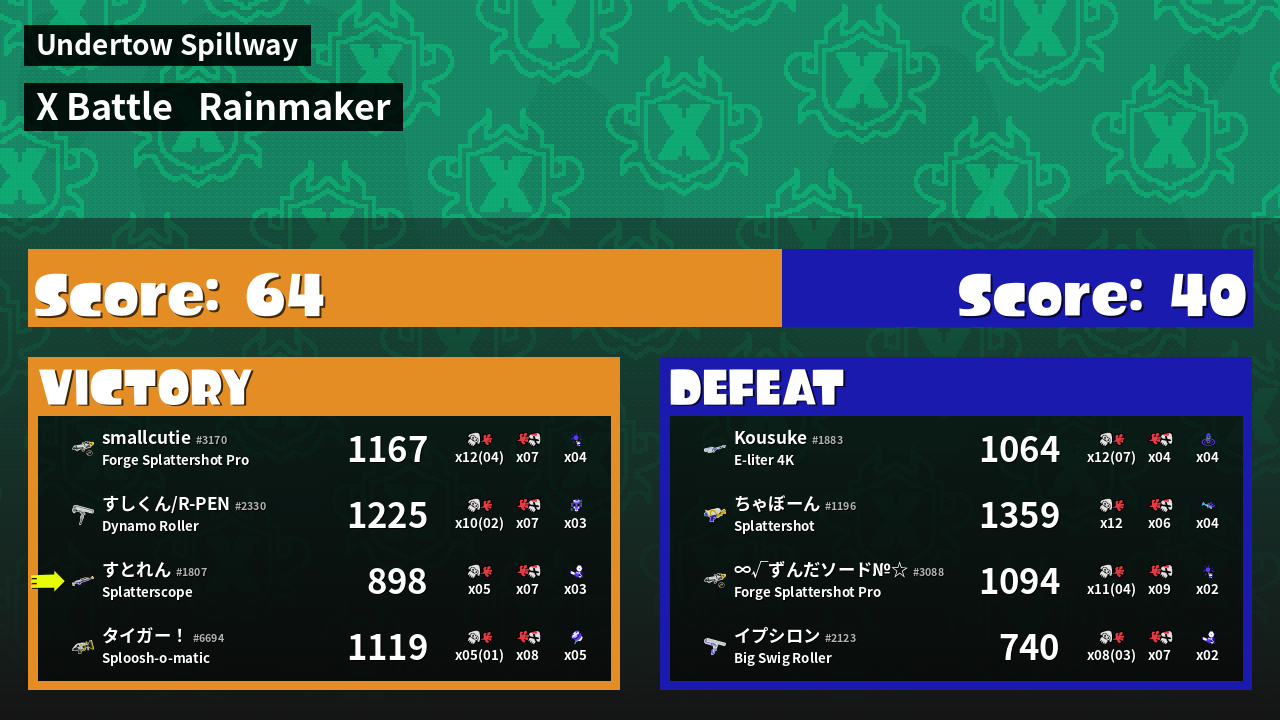 | Mode | Rainmaker - X Battle | ||
