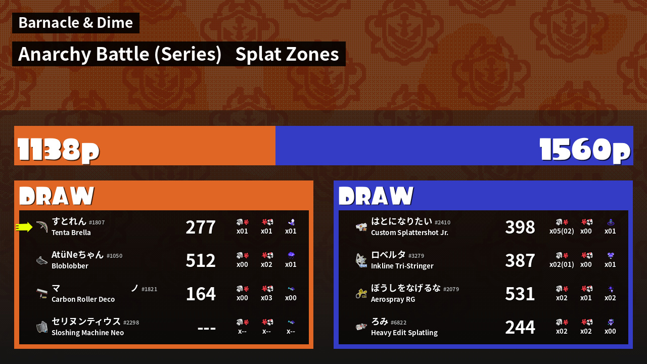 | Mode | Splat Zones - Anarchy Battle (Series) | ||