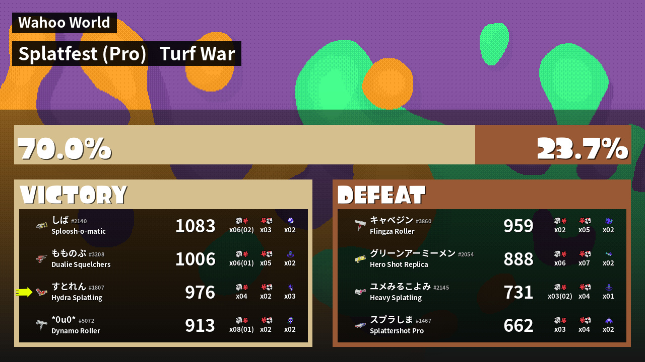 | Mode | Turf War - Splatfest (Pro) | ||