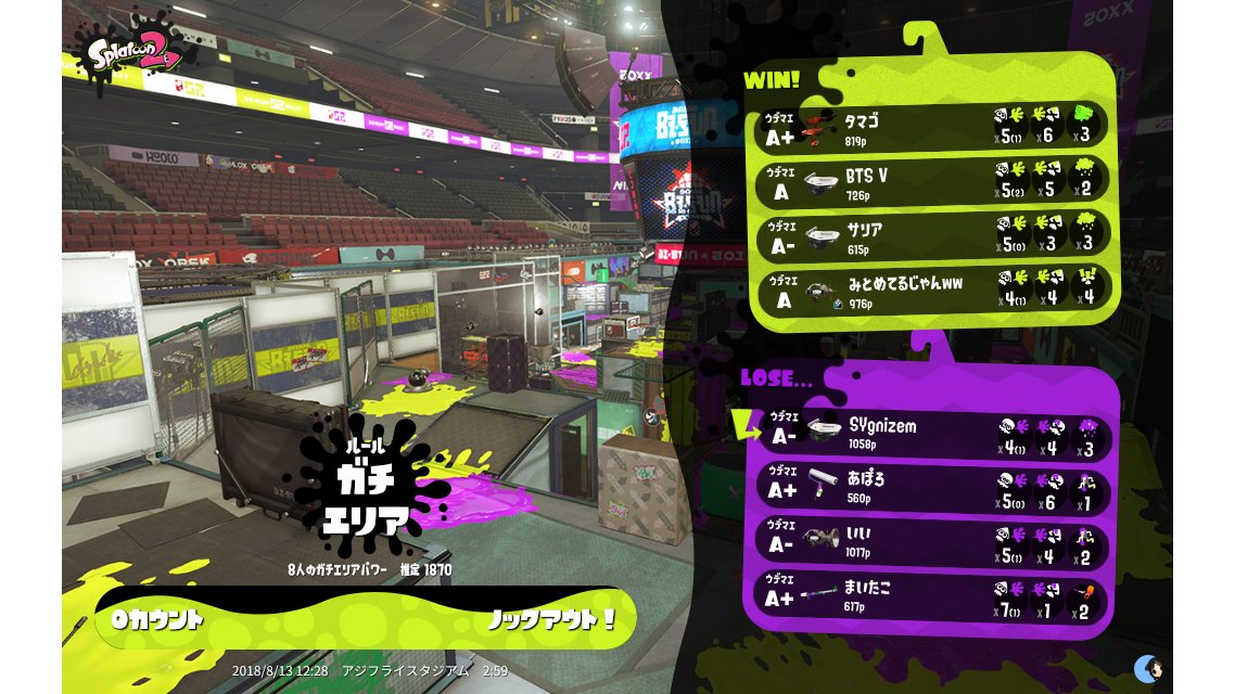 | Mode | Splat Zones - Ranked Battle | ||||||||||||||||||||||||||||||||||