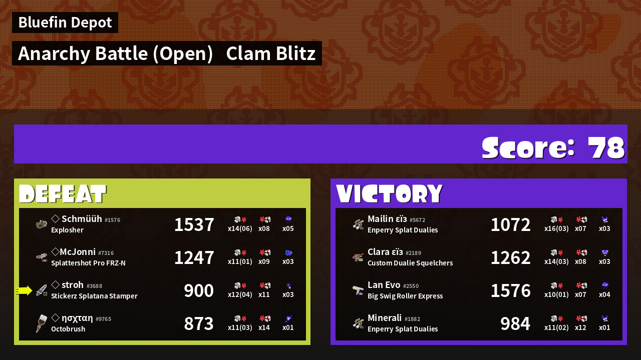 | Mode | Clam Blitz - Anarchy Battle (Open) | ||