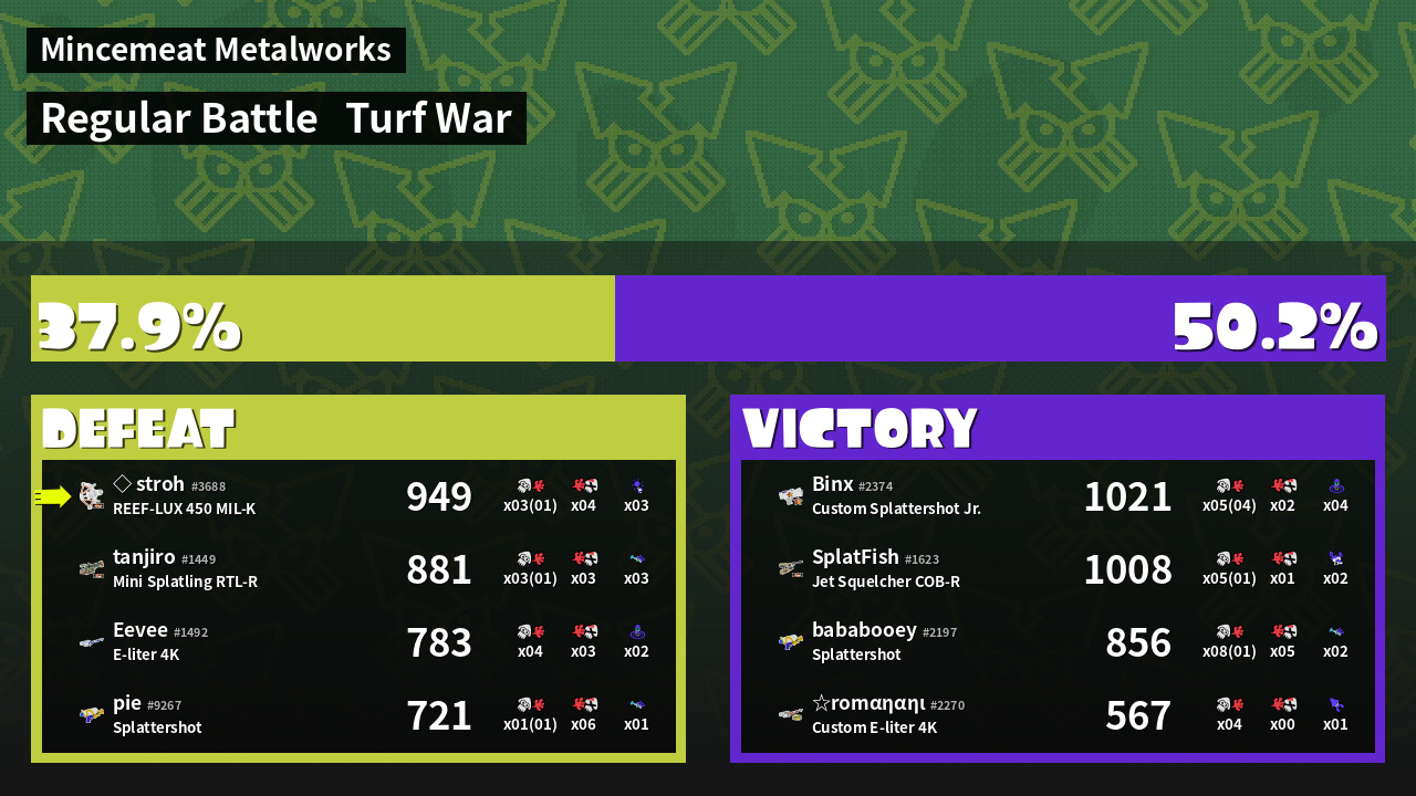 | Medals | #1 Turf Inker #1 Enemy-Base Inker #1 Splat Assister | ||
