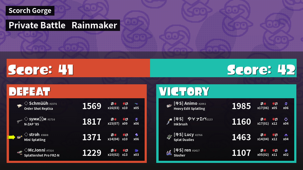 | Weapon | Mini Splatling ( Burst Bomb / Ultra Stamp) | ||