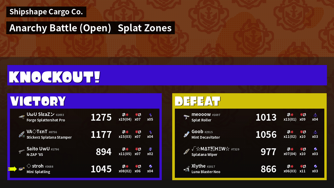 | Mode | Splat Zones - Anarchy Battle (Open) | ||