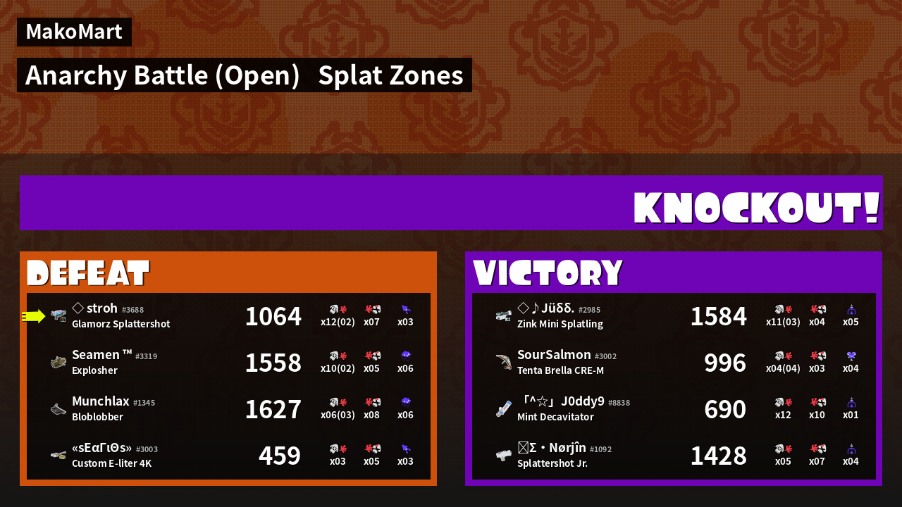 | Mode | Splat Zones - Anarchy Battle (Open) | ||