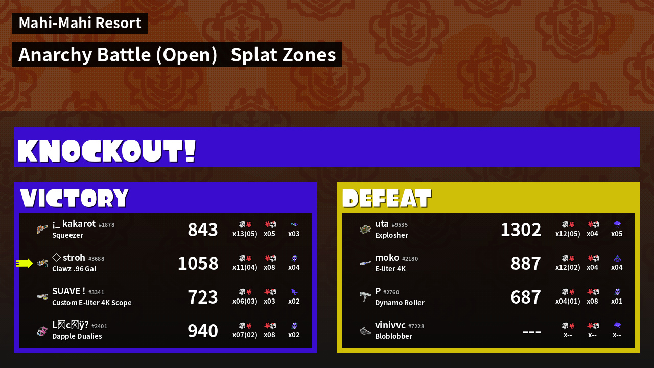 | Mode | Splat Zones - Anarchy Battle (Open) | ||