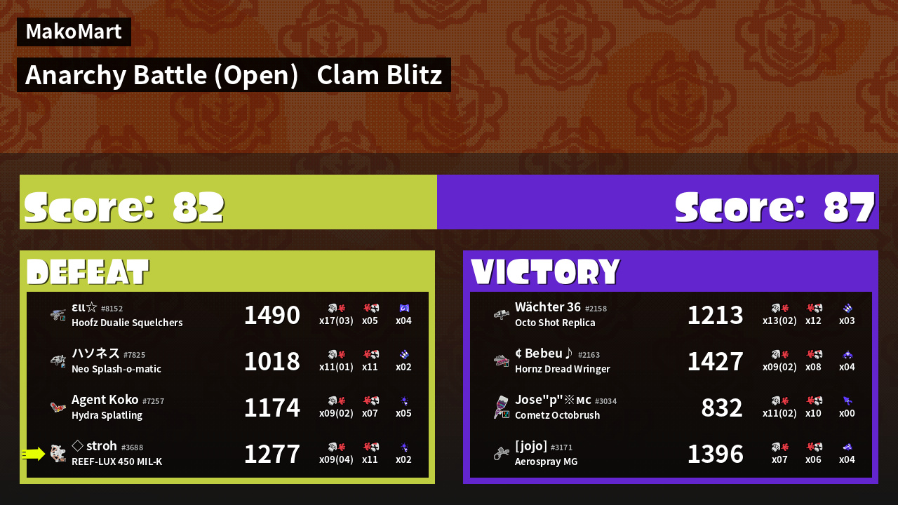| Mode | Clam Blitz - Anarchy Battle (Open) | ||