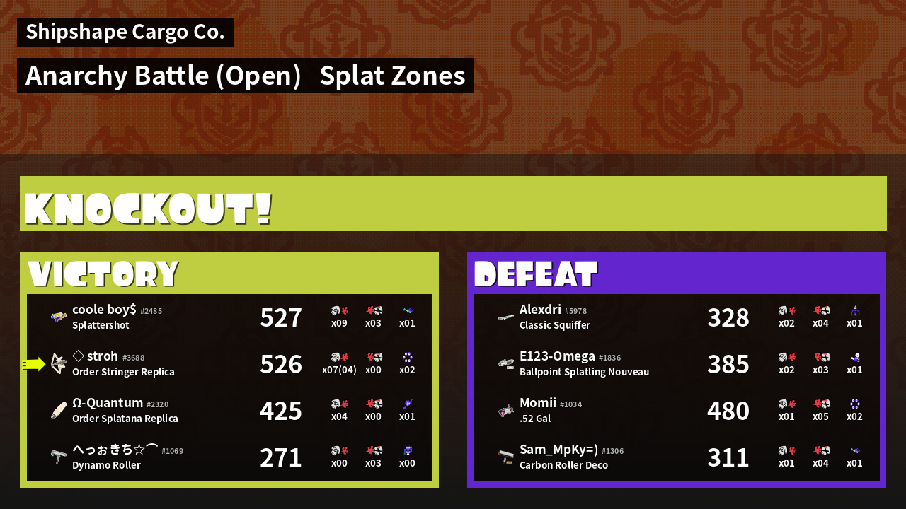 | Mode | Splat Zones - Anarchy Battle (Open) | ||