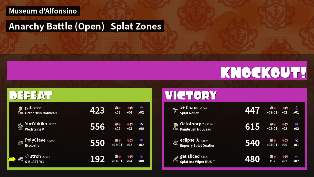 | Mode | Splat Zones - Anarchy Battle (Open) | ||