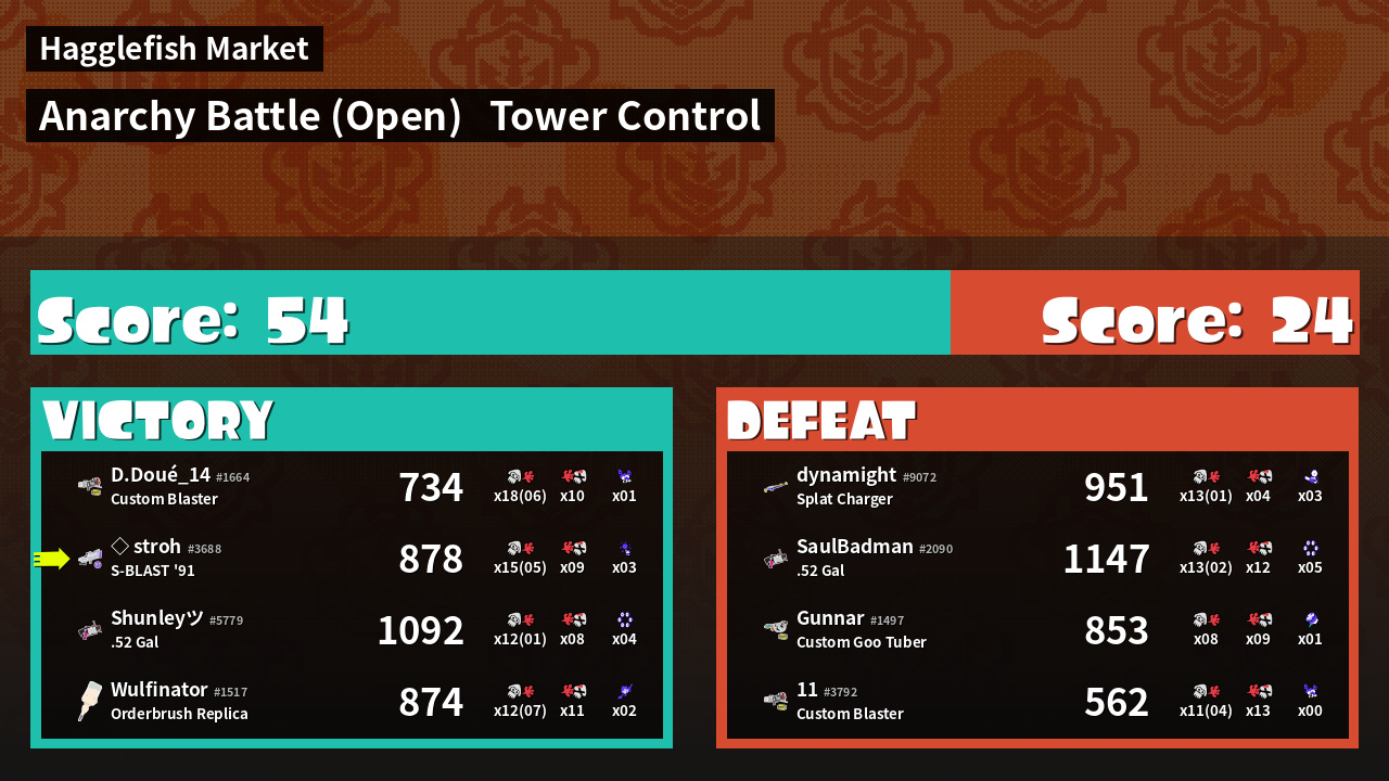 Kills / Deaths | 10 + 5 / 9 > Kill Ratio: 1.11 | ||