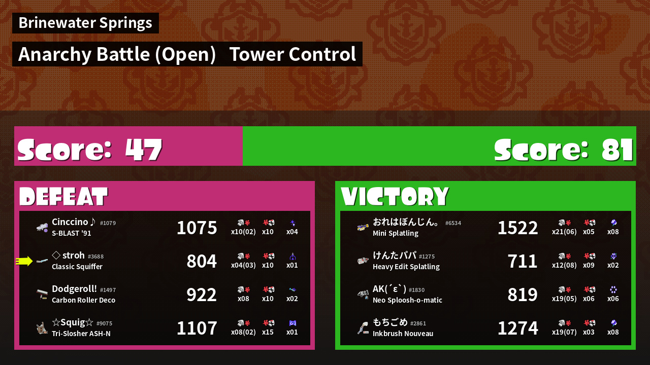 | Mode | Tower Control - Anarchy Battle (Open) | ||
