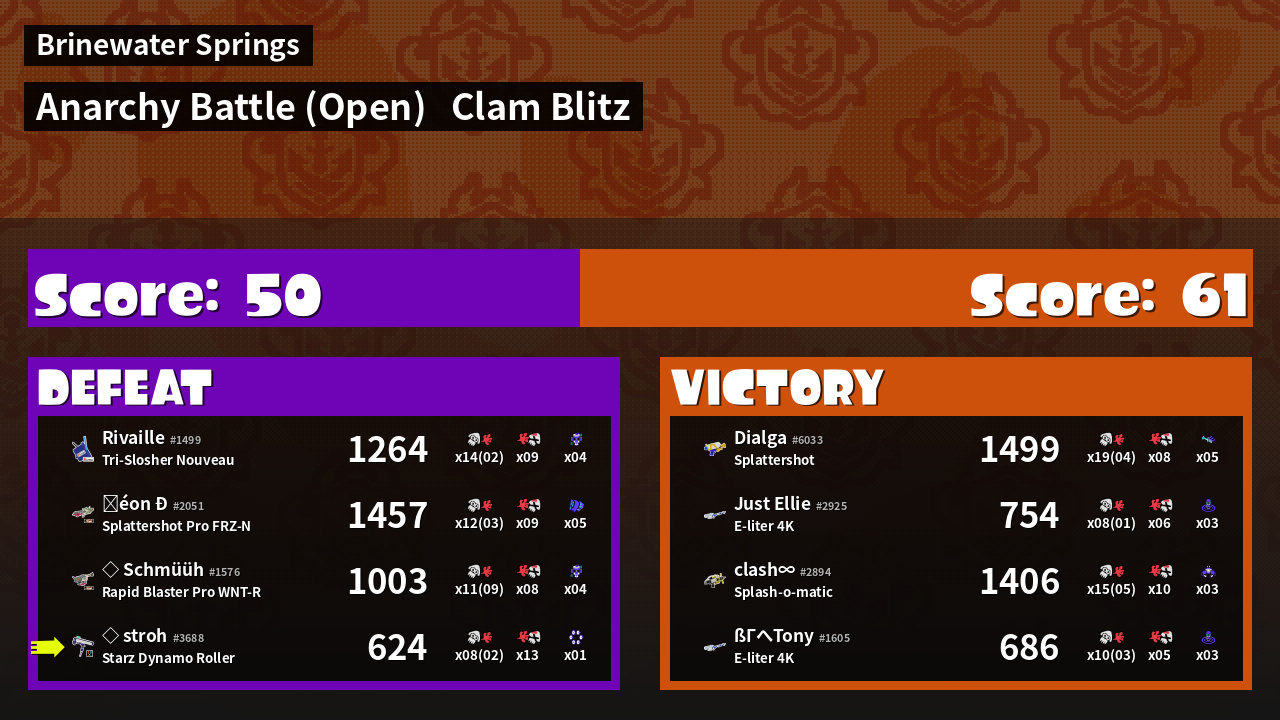 | Mode | Clam Blitz - Anarchy Battle (Open) | ||