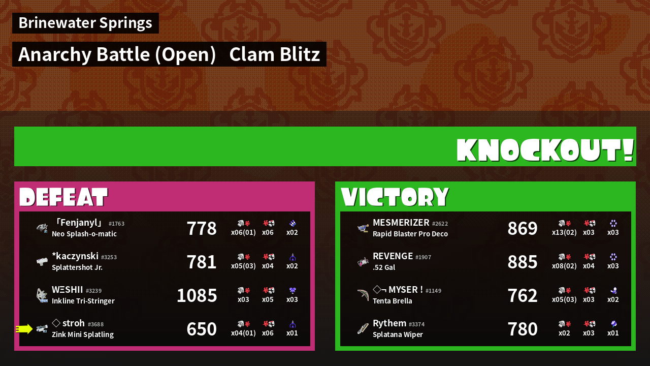 | Mode | Clam Blitz - Anarchy Battle (Open) | ||