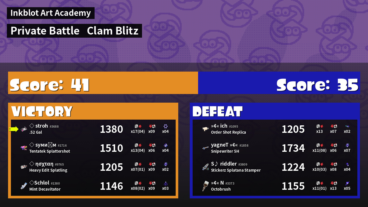 | Medals | #1 Overall Splatter #1 Popular Target #1 Enemy Splatter | ||