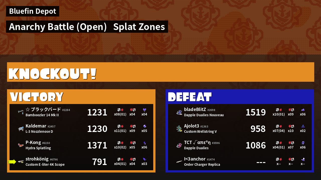 | Mode | Splat Zones - Anarchy Battle (Open) | ||