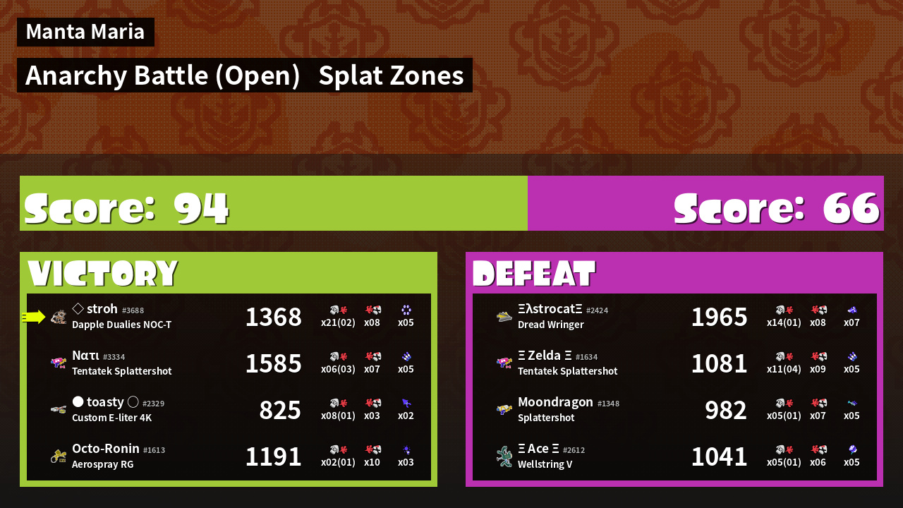 | Mode | Splat Zones - Anarchy Battle (Open) | ||