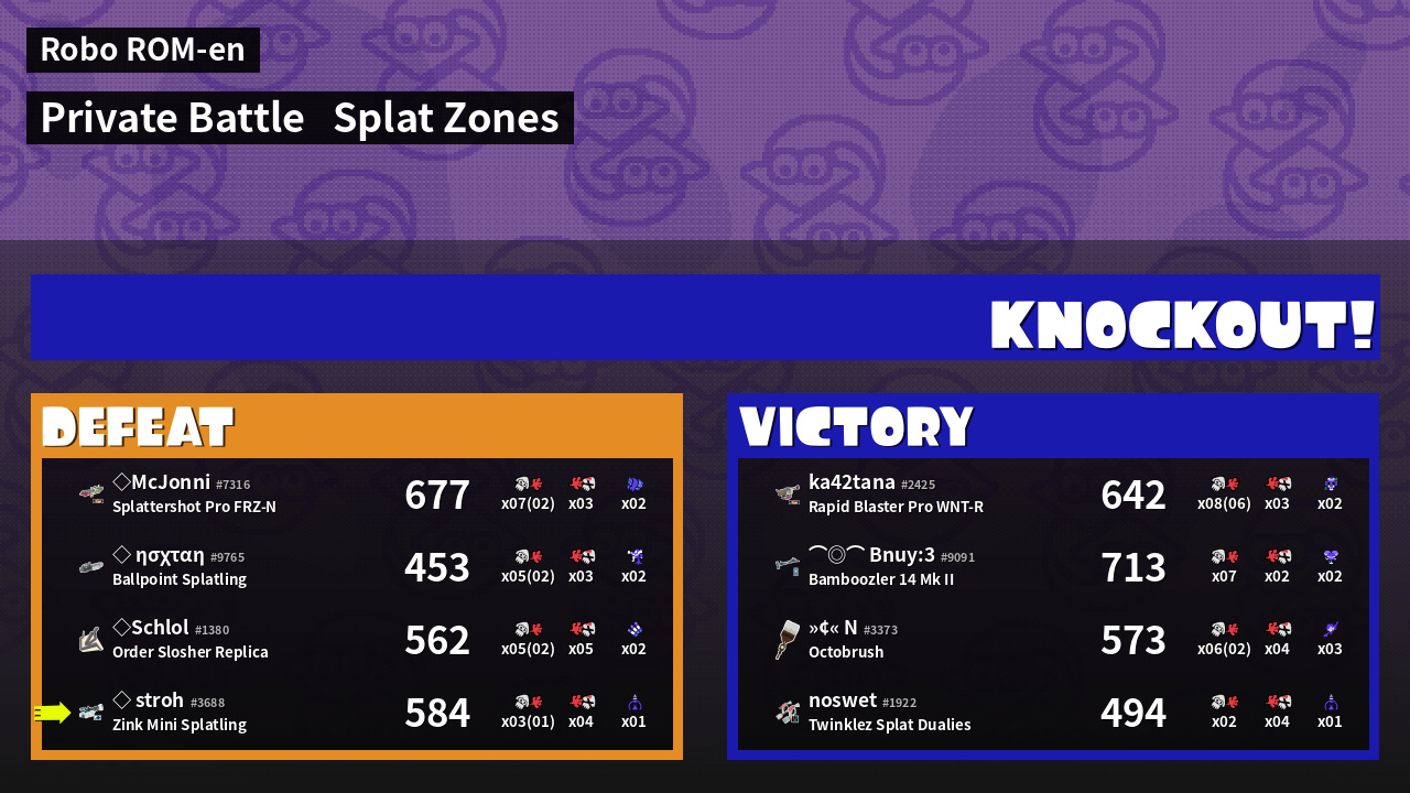 | Mode | Splat Zones - Private Battle | ||