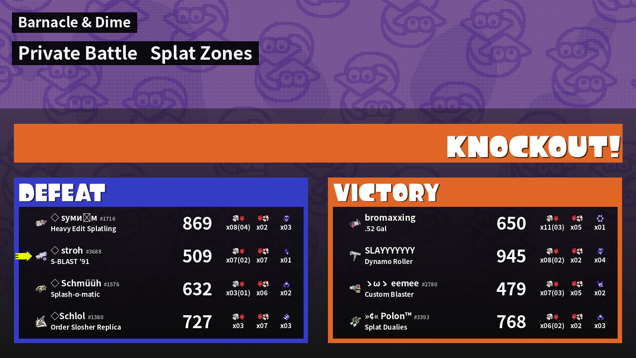 | Mode | Splat Zones - Private Battle | ||