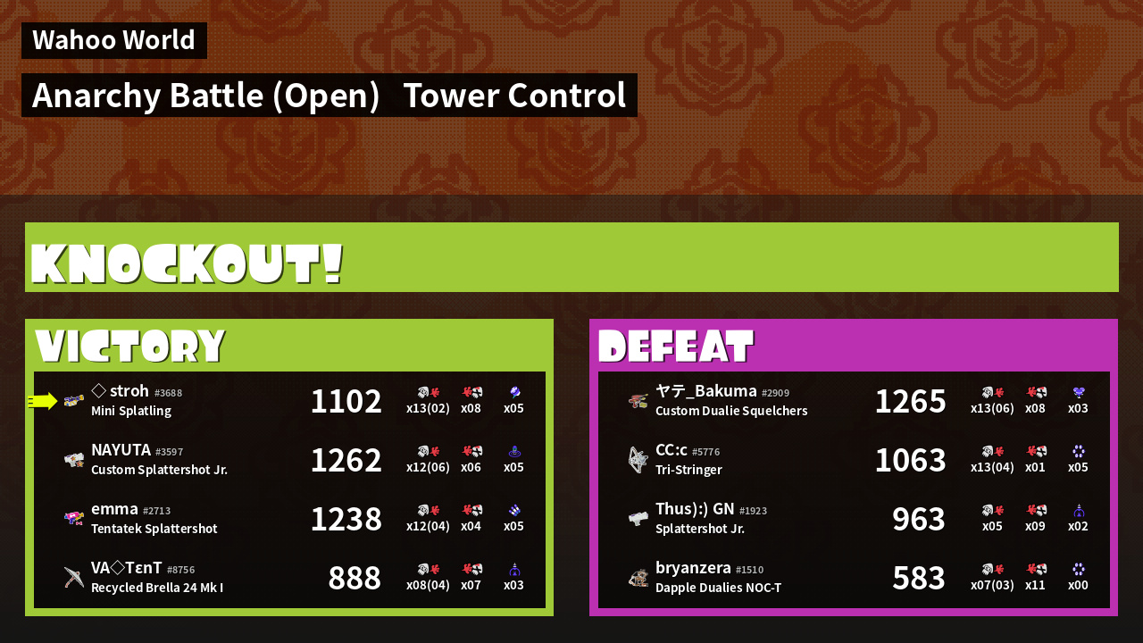 | Mode | Tower Control - Anarchy Battle (Open) | ||