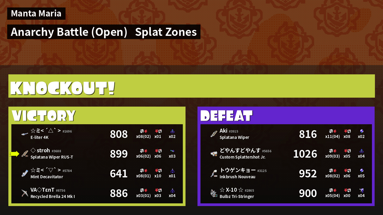 | Mode | Splat Zones - Anarchy Battle (Open) | ||