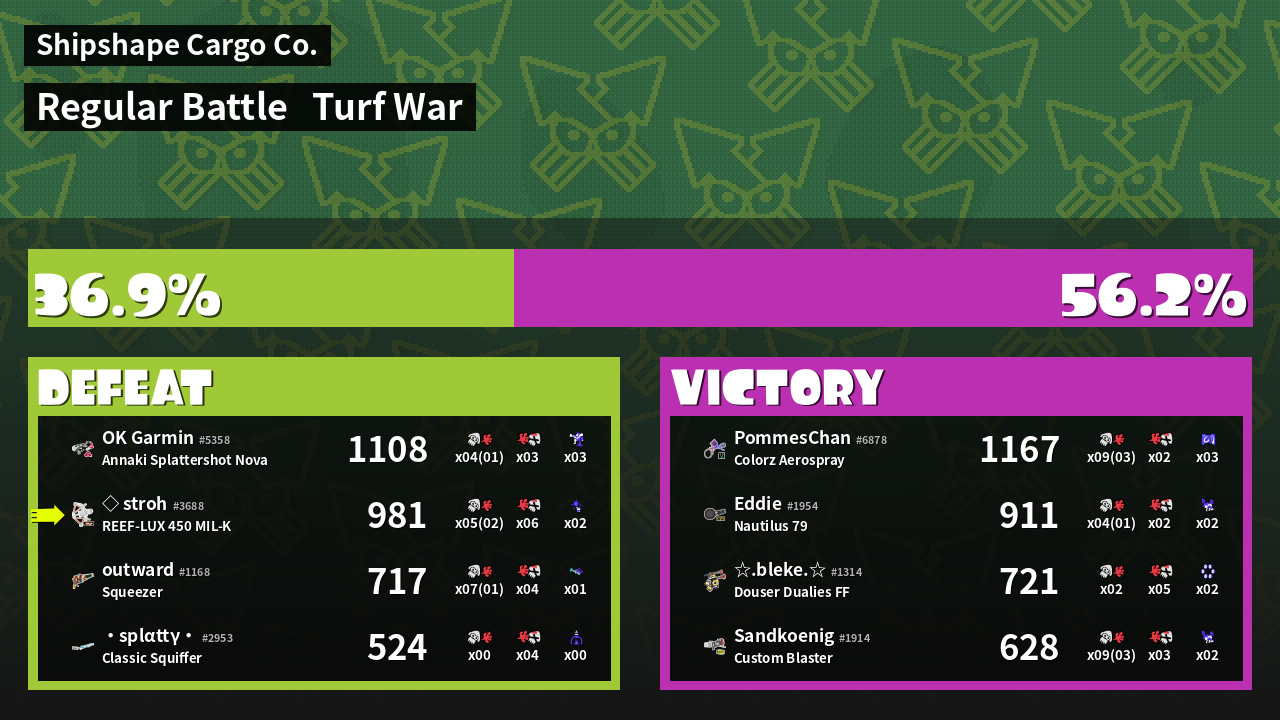 | Medals | #1 Home-Base Inker #1 Splat Assister #1 Ground Traveler | ||